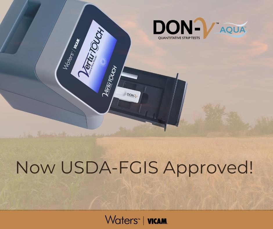 Vicam với các phép thử dải chảy bên DON-V AQUA được chứng nhận USDA-FGIS để sử dụng trong hệ thống Kiểm tra ngũ cốc chính thức của Hoa Kỳ – sử dụng đầu đọc Vertu MỚI hoặc đầu đọc Vertu Thế hệ đầu tiên Với phạm vi thử nghiệm từ 0,5 – 30 phần triệu…