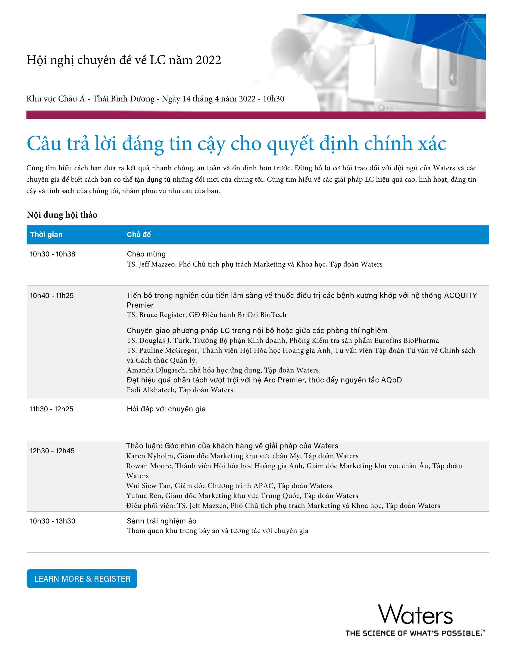 Webinar của Waters: Các giải pháp trong công nghệ sinh học của Waters